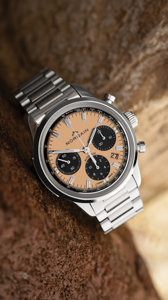 Norqain se adresează unei clientele interesate de orologeria accesibilă care nu face însă rabat de la calitatea ceasurilor. Evident, găsirea echilibrului corect între preț, design și performanța tehnică rămâne mereu o provocare pentru acest segment, însă brandul se bazează pe determinarea CEO-ului, Ben Küffer, care a părăsit Breitling pentru a-și fonda, în 2018, compania, și pe extinsa experiență antreprenorială în domeniul producției de ceasuri a tatălui, Marc Küffer. Rezultatul? O colecție variată, pentru ambele sexe, cu prețuri medii cuprinse între 3.500 și 5.500 de euro. Cronografele nu lipsesc; noutățile din acest domeniu sunt reprezentate de trei versiuni cromatice ale modelului Freedom 60 Chrono 40 mm, Peach, Pistachio și Sky Blue, echipate cu calibrul automatic N19 (Sellita SW510), cu rezervă de mers de 62 de ore. Prețurile lor se încadrează între 3.890 și 4.250 de euro, în funcție de varianta cromatică și de brățara aleasă (oțel, cauciuc sau plastic oceanic reciclat).