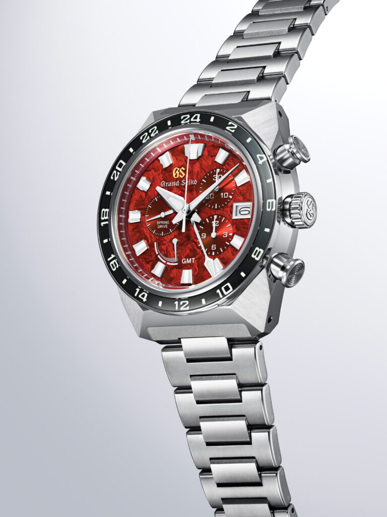 Numele lung al acestui cronograf (ceas ce măsoară intervale de până la 12 ore) are și o variantă poetică, anume Morning Glow of Hotaka Peaks – Tokyo Lion, care trimite la subtilele schimbări cromatice ale acestui peisaj montan contemplat la ore matinale de vară și la tipul de finisaj al cadranului („coamă de leu”). Lansarea modelului marchează două decenii de când Grand Seiko utilizează gama de calibre 9R Spring Drive. Valoarea mecanismului este dublată de cea a designului; contorii dispuși asimetric și nuanța unică, redată prin suprafața texturată neuniform, ce reflectă diferit lumina, conferă cadranului o geometrie dinamică, echilibrată de proporțiile perfect calculate ale carcasei și brățării de titan. Acest ceas (14.000 de euro) e disponibil în ediție limitată, doar aparent generoasă (700 de exemplare), de vreme ce fanii Grand Seiko tocmai astfel de piese tehnico-lirice așteaptă.
