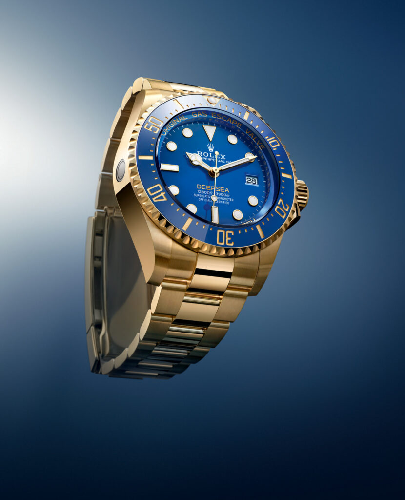 Nici în acest an, Rolex nu se dezminte: își încântă fanii cu modele foarte valoroase, între acestea numărându-se Oyster Perpetual GMT-Master II, Oyster Perpetual Sky-Dweller și un Cosmograph Daytona cu diamante pe lunetă, primul pe care am pus ochii, grație combinației de energie sportivă și design prețios, ceas pe care l-am prezentat deja în numărul trecut al revistei noastre. De data aceasta, e rândul lui Rolex Oyster Perpetual Deepsea, un model care ne reamintește de magia aurului galben, mai rar folosit azi în orologerie și, poate de aceea, emanând un aer încă mai aristocratic. Combinația dintre designul plin de energie, tehnicitatea calibrului automatic 3235 și cromatica dictată de aur și cadranul (lăcuit)/luneta (de ceramică) albastre face toți banii care, evident, nu sunt puțini: 49.900 de franci elvețieni.