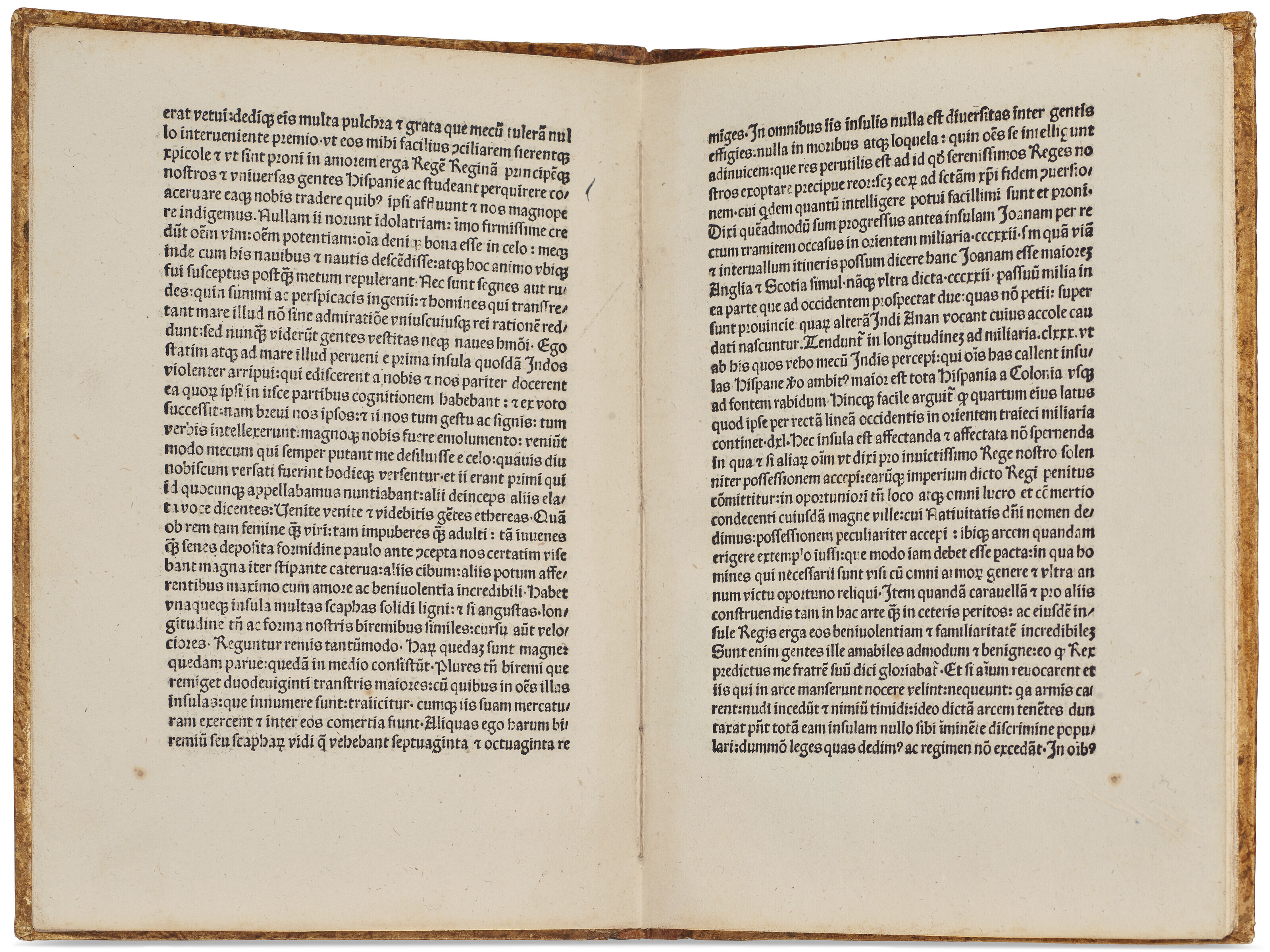 Datată martie 1493, scrisoarea lui Columb este adresată regelui Ferdinand al II-lea și reginei Isabella. Exploratorul scrie că a ajuns în ceea ce crede că este un arhipelag de insule din Oceanul Indian și descrie frumusețea locurilor: palmieri, munți uriași, râuri limpezi și păsări care cântă. Totodată, se laudă că a luat câțiva băștinași „timizi și temători” și i-a urcat pe una dintre corăbii pentru a-i aduce în Spania.
