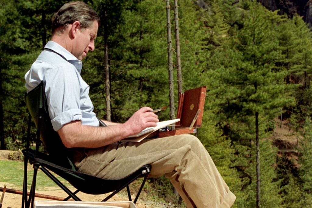 „Am început să pictez pentru că nu eram mulțumit de ceea ce îmi oferea fotografia”, spune prințul Charles într-un comunicat de presă care anunță expoziția. „Și am descoperit repede frustrarea de a nu fi în stare să transpun pe hârtie imaginea pe care o aveam în fața ochilor.”