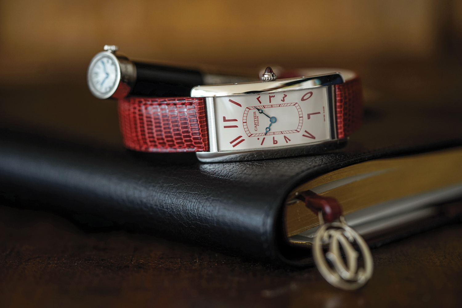 La începutul anilor ʼ90 am văzut pe internet o piesă unică într-un magazin din Hong Kong pe care nu o știam. M-am îndrăgostit de ea pe loc. M-am temut atât de tare că se va vinde, că am transferat imediat întreaga sumă necesară şi mi-am luat bilet pentru Hong Kong ca să intru în posesia ceasului. Când m-am întors la Paris, am mers la Cartier, unde s-a dovedit că nu era vorba despre o piesă unică, ci despre o comandă personalizată, în doar șapte exemplare. Rămâne un ceas cool, datorită numeralelor sale roșii indescifrabile, în arabă.