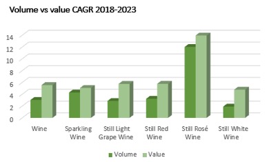 În ceea ce privește noile ocazii de consum care se conturează, vinul crește din ce în ce mai mult în preferințele consumatorilor, nu doar în retail, ci și în restaurante și baruri. Eforturile industriei de educare a consumatorilor sunt vizibile în preferințele din ce în ce mai sofisticate ale acestora. Doi indicatori importanți în acest sens sunt preferința în creștere pentru vinul roșu și creșterea accelerață a valorii pieței. În anul 2018, volumul de vin roșu a crescut, iar vinul alb a scăzut ușor, în timp ce valoarea tuturor subcategoriilor de vin a crescut semnificativ. Luând în considerare majorarea cu aproximativ 2% a prețurilor și creșterea de 2% a volumului în 2018, o creștere a valorii categoriei de 8% este susținută în principal de preferința pentru vinuri dintr-un segment de preț superior. Acest comportament este așteptat să influențeze categoria pozitiv în perioada viitoare.