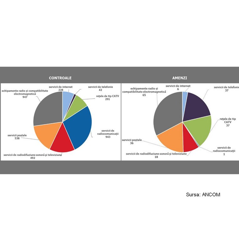 După 492 de controale, ANCOM a aplicat 18 amenzi contravenționale în valoare totală de 252.000 de lei și furnizorilor de servicii de televiziune și radiodifuziune sonoră. Principalele sancțiuni au fost aplicate pentru nerespectarea datelor tehnice, a parametrilor ori a condițiilor cuprinse în autorizațiile tehnice.