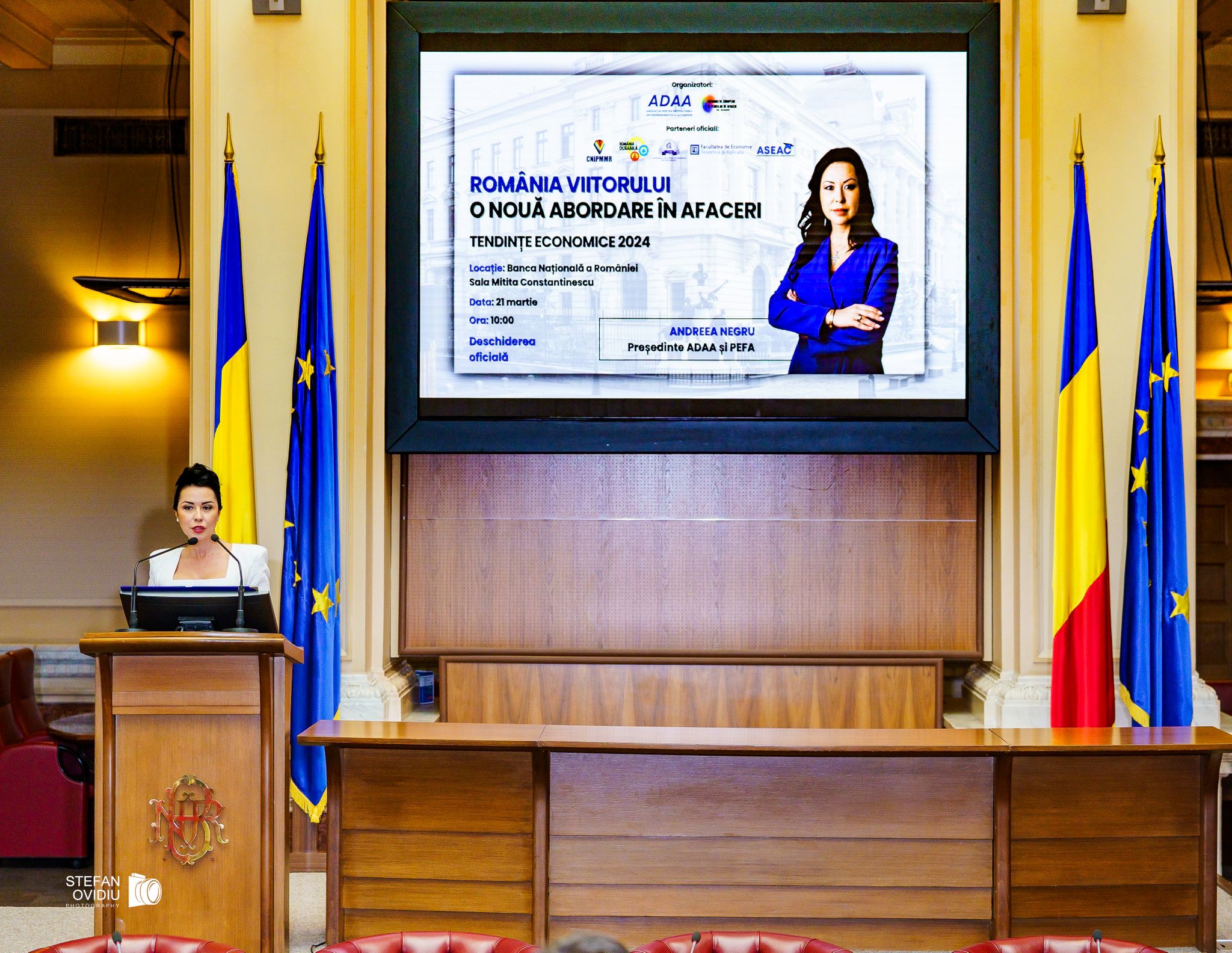 “Unul dintre cele mai remarcabile aspecte ale performanței feminine în economie este abilitatea lor de a aduce o perspectivă diferită și inovatoare asupra problemelor și oportunităților. Studiile au arătat că diversitatea în conducerea unei organizații conduce la decizii mai bune și la inovație accelerată. Femeile aduc nu doar cunoștințe și abilități tehnice, ci și o empatie naturală, o viziune pe termen lung și o abordare echilibrată în luarea deciziilor, acestea reprezentând un avantaj competitiv real în mediul de afaceri”, a declarat Andreea Negru, președinte PEFA, la conferința “Tendinţe Economice 2024”.