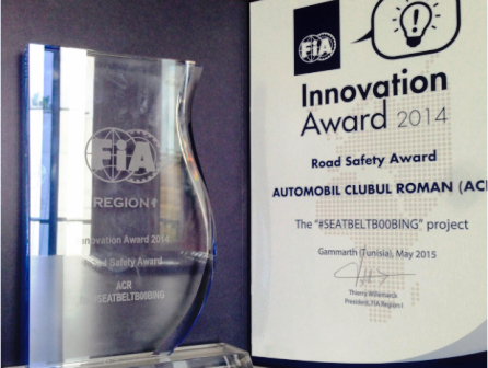 Trofeul, acordat pentru campania #seatbeltb00bing, prin care se promovează purtarea centurii de siguranţă, reprezintă o dovadă a recunoaşterii de care Automobil Clubul Român se bucură pe marea scenă internaţională, pentru acţiunile desfăşurate pe linia siguranţei rutiere şi a reducerii accidentelor pe drumurile publice.
