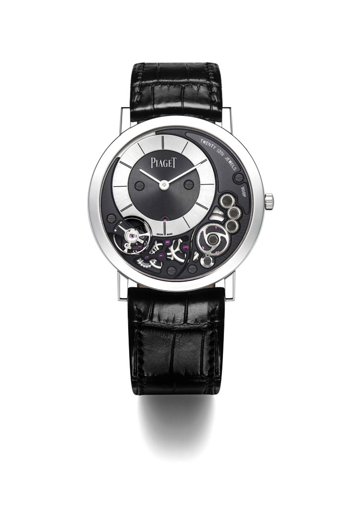 În timpul discuției noastre din noiembrie, președintele Piaget, Philippe Leopold-Metzger, a vorbit despre o lansare spectaculoasă Piaget în cadrul SIHH. Și iată că a venit momentul să o dezvăluim: Piaget Altiplano, cel mai plat ceas mecanic din lume și primul ceas a cărui carcasă a fuzionat cu mecanismul. Cu ocazia aniversării a 140 de ani de existență, casa lansează acest model extrem de îndrăzneț, la care ambele manufacturi Piaget (La Côte aux Fées – specializată în mecanisme și Plan-les-Ouates – carcase) au lucrat timp de trei ani: 145 de componente pentru cel mai slim calibru mecanic, o reușită posibilă datorită unei viziuni foarte îndrăznețe: placa de bază a mecanismului este, în același timp, capacul carcasei, astfel că întregul ceas are o grosime de 3,65mm. Vom prezenta mai pe larg acest ceas excepțional după ce ne întoarcem de la Salonul de la Geneva.
