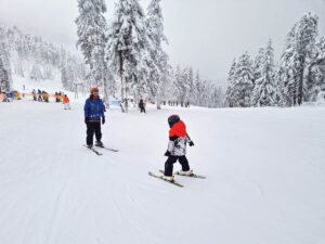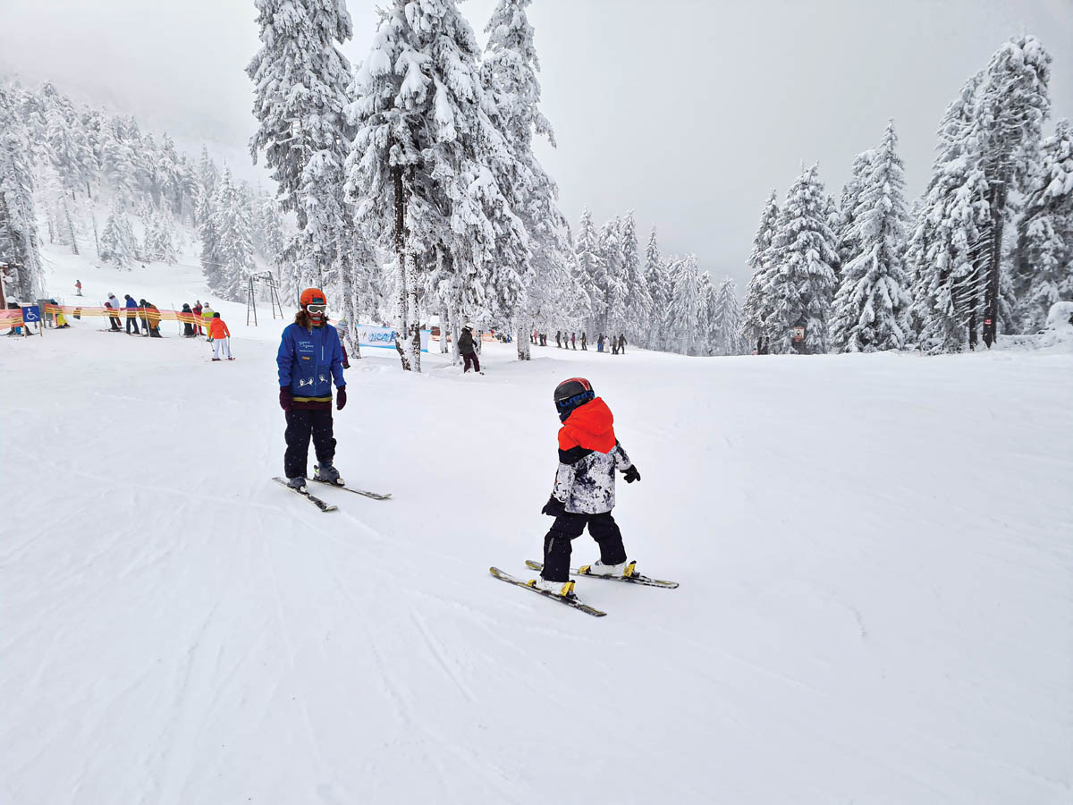 Temerile noastre inițiale au dispărut de îndată ce am întâlnit-o pe Timea, instructorul de schi al lui Alex, foarte calmă, prietenoasă și cu lipici la copii, care ne-a spus că l-am adus pe Alex pe pârtie la vârsta ideală, 5 ani fiind perioada în care copiii înțeleg mult mai bine toată experiența, sunt mai siguri pe ei și mai independenți decât la vârste mai mici și, totodată, au mai mult curaj decât adulții care tind să se lase cuprinși de un milion de alte gânduri. Conform poveștilor Andrei, printre care cele mai presante idei în primele ore de schi erau „teama de penibil“, de ochii celorlalți, de presiunea celor din jur: odată ce a reușit asta, a fost mult mai ușor să își învingă „teama“ de pârtie.