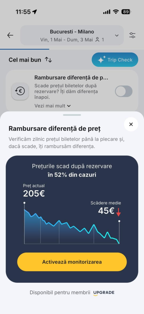 Pentru a răspunde acestei realități, Vola lansează un serviciu de protecție post-achiziție care monitorizează automat prețul biletului și returnează diferența dacă acesta scade. Astfel, utilizatorii nu mai sunt nevoiți să anticipeze momentul optim de cumpărare — sunt acoperiți chiar și după finalizarea plății. Dacă tariful scade, suma este restituită sub formă de voucher, eliminând riscul achiziției „prea devreme” sau „la un preț prea mare”.