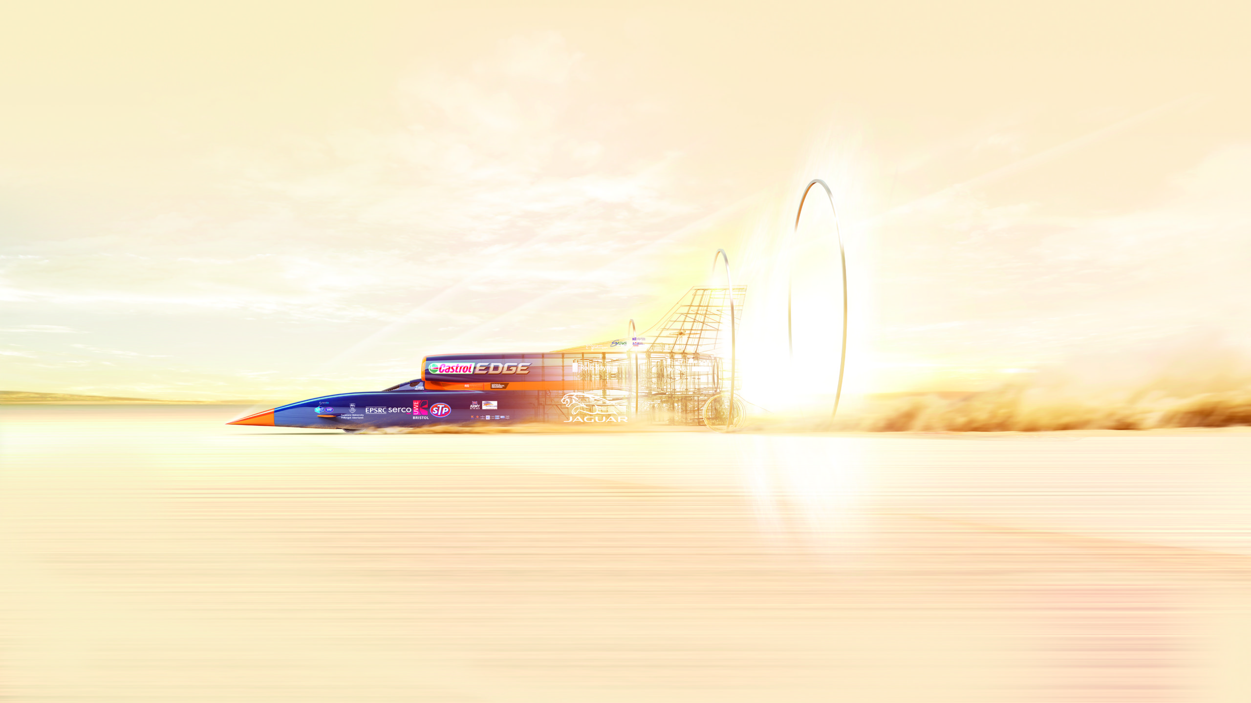 La viteza maximă, mașina va parcurge o milă (1,6 km) în 3,6 secunde, mai exact 4,5 terenuri de fotbal pe secundă. Aceasta dispune de trei centrale de forță, un turbojet Rolls-Royce EJ200 de la un Eurofighter Typhoon, un set de rachete hibrid NAMMO și un motor de mașină de curse de 750 de cai-putere, care acționează pompa oxidantului rachetei. Împreună generează echivalentul a 135.000 de cai-putere, egal cu forța a 180 de mașini de Formula 1.