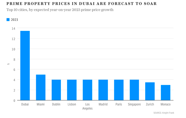 Analiștii au indicat că principala cauză a creșterii averilor private în UAE sunt barierele reglementare reduse pentru lansarea de afaceri și investiții în imobiliare. UAE, care nu are impozit pe venit, a prosperat în urma acestei tendințe, cu prețurile imobiliare în creștere cu 63% în Dubai de la începutul anului 2022.