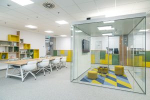 Adițional spațiilor de lucru inovatoare, cum sunt birourile comune și spațiile deschise, sălile de ședințe diversificate, cele de training sau zonele de relaxare concepute la comandă, noua clădire oferă diferite facilități precum parcare subterană, raste pentru biciclete, centru medical, zonă de gimnastică și spații personalizate, cum sunt zonele de tip Design Thinking sau Hub-ul de Inginerie. Acestea din urmă vor deservi atât dezvoltarea proiectelor interne Bosch, cât și ca loc de desfășurare pentru evenimente precum hackatoane, concursuri academice sau alte proiecte dedicate studenților. Până la 70 de procente din mobilierul existent în spațiile de birouri a fost conceput și personalizat de mici producători locali și afaceri de familie, reiterând astfel sprijinul companiei față de ecosistemul local.