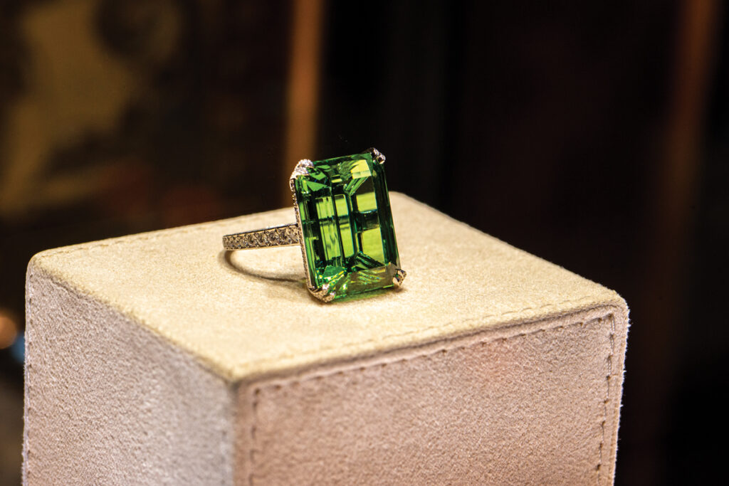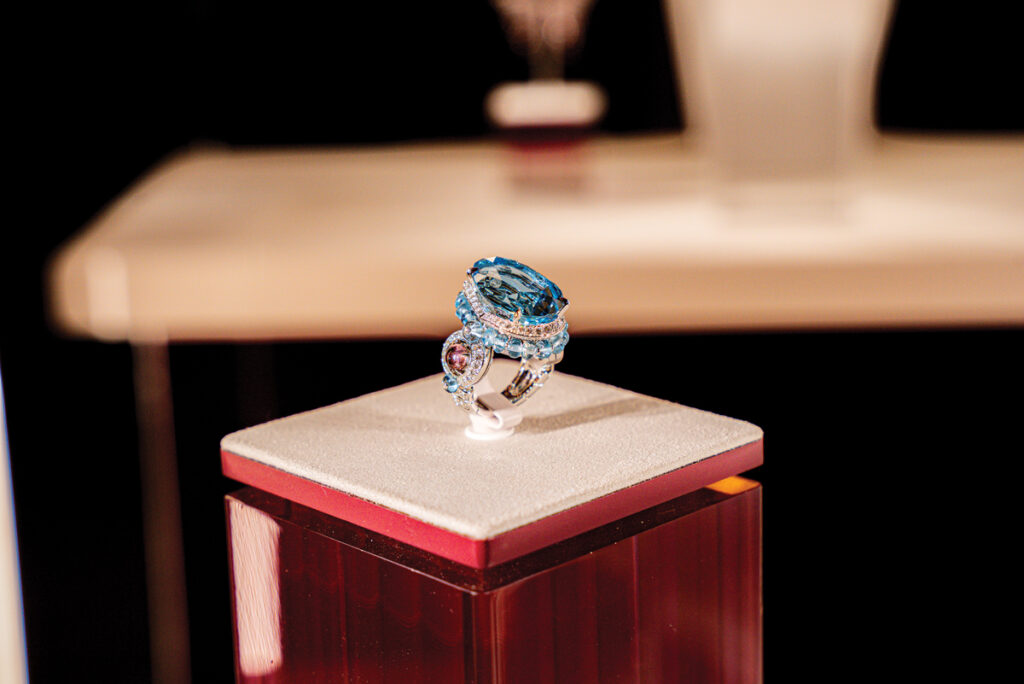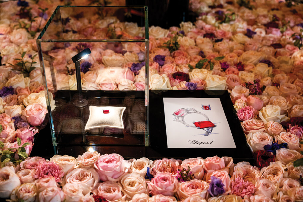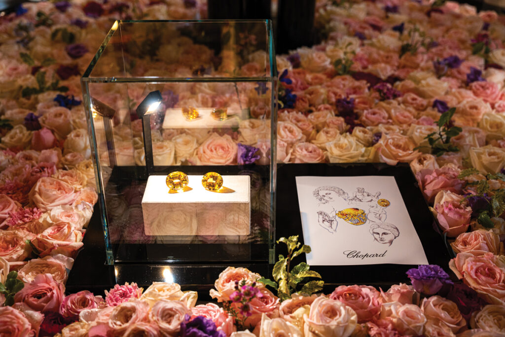 Caroline Scheufele, coproprietara Maison Chopard alături de fratele său, Karl-Friedrich Scheufele, este inspirația și vizionara din spatele segmentului de bijuterii al brandului, iar sub călăuzirea sa Chopard a dat naștere unora dintre cele mai frumoase și spectaculoase piese din ultima sută de ani. Prezentarea din ianuarie nu a fost o excepție, Caroline alegând, pentru prima dată, să expună, alături de bijuterii superbe, și pietre prețioase excepționale, care se vor regăsi în curând în inele, coliere sau brățări. Sub titulatura „Exceptional Stones”, sălile elegante și misterioase de la Hôtel d’Évreux au găzduit rarisime diamante verzi și galbene, un rubin extraordinar, safire și un curcubeu de turmaline.