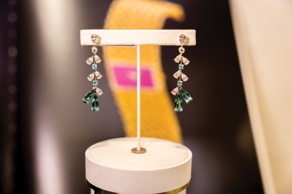 Cum am avut privilegiul de a fi prezentă la lansarea Garden of Kalahari, am admirat „pe viu” și aceste pietre superbe care, cu siguranță, vor intra foarte curând în colecții private, de îndată ce artizanii Chopard le transformă în bijuterii. Nu vreau să uit de turmalinele prezentate – trei pietre de un albastru strălucitor, descoperite în Mozambic, într-o regiune celebră pentru cele mai frumoase nuanțe de turmalină, de la albastru la un albastru-verzui. Una dintre cele trei piese, de aproape 16 carate, va fi montată într-un inel.