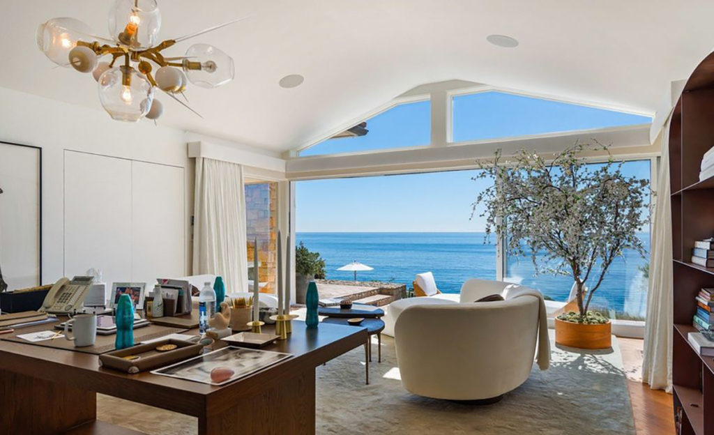 Clădirea principală, casa de oaspeți și anexa pentru personalul de pază au împreună șapte dormitoare și zece băi. De pe marginea piscinei din curtea din spate pot fi admirate apele înspumate ale oceanului, iar coborârea de la cabana situată în cel mai înalt punct al proprietății până la plajă se poate face cu ajutorul unui funicular, instalat în anii ’80 de unul dintre foștii proprietari, cântărețul country Kenny Rogers.
