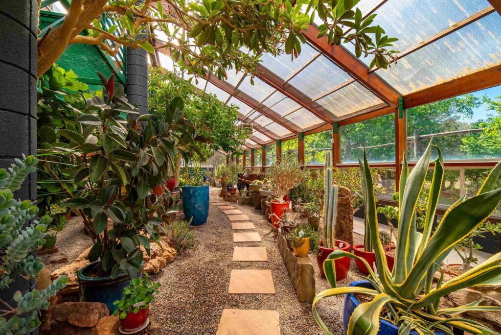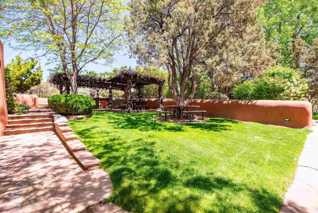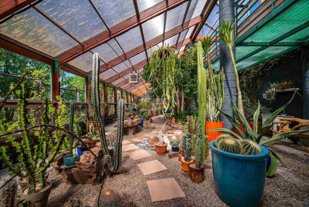 Grădina este dominată de vegetație luxuriantă. O seră imensă adăpostește colecția de cactuși a lui Paul Allen, și un arbore Bodi care provine din semințele pe care Dalai Lama i le-a dat Georgiei O’Keeffe când a vizitat proprietatea. La rândul lor, potrivit informațiilor furnizate de agenția imobiliară care se ocupă de vânzare, acestea proveneau „din semințele copacului sub care a stat însuși Buda în anul 500 î. Ch. pentru a atinge iluminarea.”