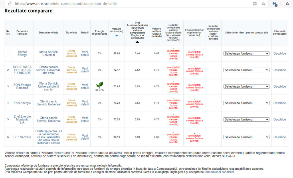Furnizarea serviciilor de energie electrică se realizează în regim concurenţial și nu se vor mai aplica tarife reglementate. Practic, fiecare client casnic trebuie să-și exercite dreptul de a alege un furnizor de servicii de utilităţi până la 31.03.2021 conform celor comunicate de ANRE, în funcţie de nevoile specifice de consum și de ofertele concurenţiale gândite de furnizori. În cele din urmă rezultă două opţiuni, piaţa de serviciu universal şi piaţa concurenţială.