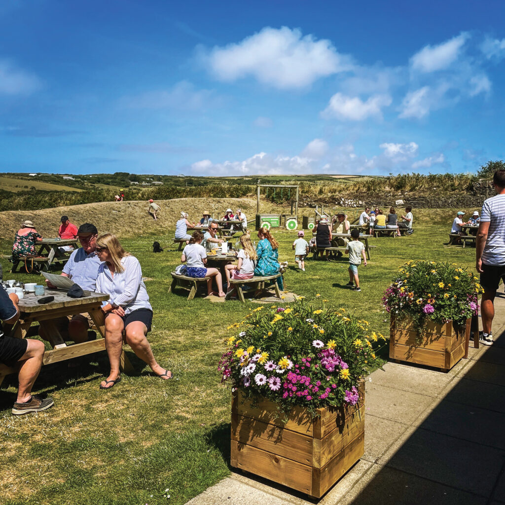 Cornwall este presărat cu așa-numitele farm shops, mici construcții care aparțin de fermele locale și în care poți lua masa, un ceai de la ora 5, poți cumpăra produse pentru acasă sau suvenire locale. Boscastle Farm Shop arată exact așa, o mică clădire din lemn, deloc impresionantă. Dar totul se schimbă când ajungi în grădina unde se servește masa și unde poți savura, pe lângă o supă de broccoli asezonată cu celebra Cornish Blue, și priveliștea extraordinară a Oceanului Atlantic străjuit de celebrele stânci din Cornwall. După ce îți recapeți suflul, poți comanda ceva de mâncare. Toate preparatele din meniu beneficiază de ingrediente locale (pește, vită, crab, homar, cartofi etc.), iar meniul zilei e o adevărată dovadă de inventivitate a bucătarului-șef. Locul a luat numeroase premii, a fost vizitat și de regele Charles III, iar deserturile făcute în casă, de la scones, Chelsea buns sau ruladele cu ciocolată până la banoffee pie, prăjitura cu morcovi sau tartele cu fructe, sunt ceva de vis.