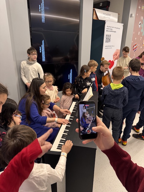 Așezați pe canapelele și pernele colorate, în brațele părinților sau în scaunele lor rulante, copiii s-au putut bucura în voie de concertul gândit special pentru ei și nevoile lor. Unii se mișcă greu, alții se agită sau evită privirea ori par prinși într-o lume numai a lor. Când primele acorduri de pian încep să curgă, ceva se schimbă aproape imperceptibil. Respirațiile devin mai line, corpurile se relaxează, iar liniștea se instalează treptat.
