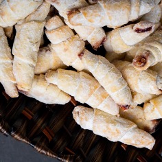 Ingrediente: făină, drojdie, ulei, lămâie, zahăr vanilat, gem și nucă