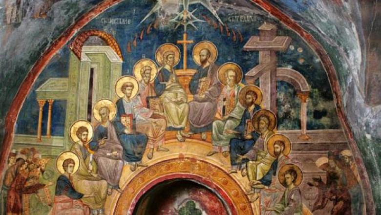 Evenimentul Pogorârii Duhului Sfânt este descris în cartea „Faptele Apostolilor”, unde se spune că Duhul Sfânt Se pogoară din cer ca un vuiet mare de vânt şi Se împarte deasupra capului fiecăruia din cei prezenţi, în chip de limbi de foc.