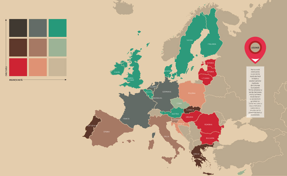 O analiză a publicației Politico pe baza datelor publicate de Comisia Europeană arată că exodul profesioniștilor din domeniul sănătății este mai pronunțat în Estul și Sudul Europei. De fapt, aceste țări formează medici pentru vecinii lor mai bogați, iar acesta este și cazul țării noastre. Cheltuielile cu sănătatea per capita variază drastic în țările Uniunii Europene, de la 816 euro pe an în România, la peste 4.000 de euro în Luxemburg, Germania sau altă țară din Europa de Vest. Astfel, medicii și asistenții aleg să se mute în țări mai bogate. România și-a pierdut jumătate dintre medici între anii 2009 și 2015, iar între 1997-2016 a trimis în afara granițelor 9.831 de profesioniști. La câțiva ani după aderarea Poloniei la UE, mai mult de 60% dintre studenții la medicină în anii terminali intenționau să plece în afara țării. Cele mai afectate țări de exodul medicilor și asistenților medicali sunt țările nou-intrate în Uniunea Europeană, plus Portugalia și Grecia, afectate de criza financiară.Pierderea medicilor și a asistenților are deja urmări, în anumite țări. În România, de exemplu, 10% din populație spune că nu beneficiază de servicii medicale, iar la 100.000 de români există un deficit de 80,2 de cadre medicale, conform analizei Politico.
