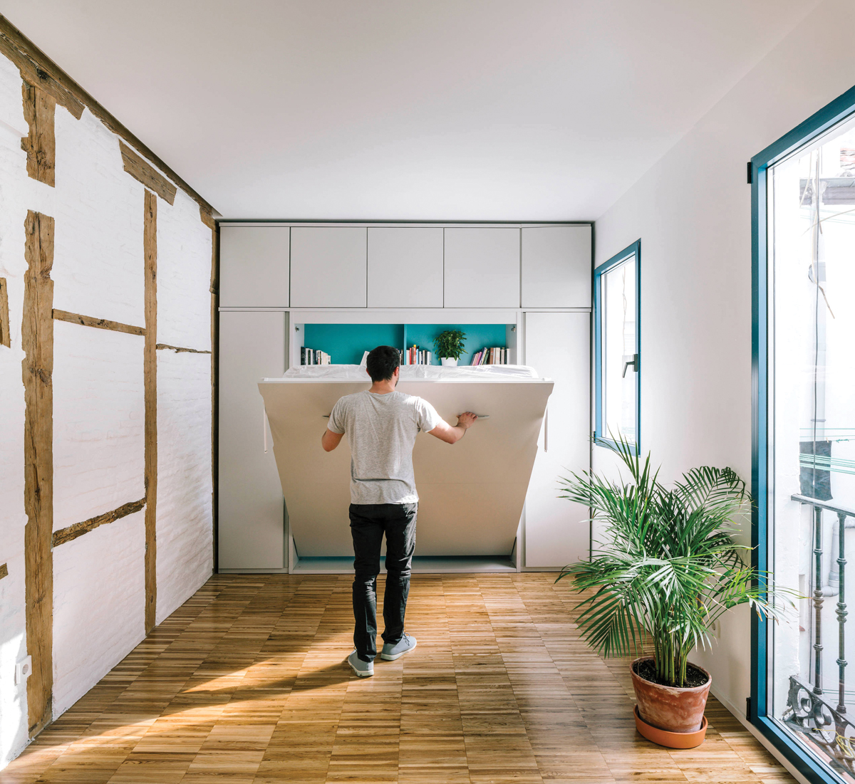Înlocuiți un pat standard cu unul ascuns în perete (rabatabil)