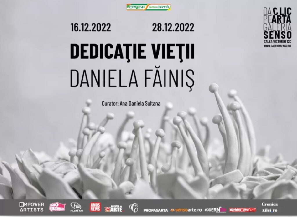 „În 2015, «revista ARTA» dedica ceramicii românești un amplu dosar tematic, coordonat de Cristina Popescu Russu, care cuprindea și o serie de interviuri cu cei mai relevanți artiști ceramiști autohtoni. Firește că din această serie nu avea cum să lipsească Daniela Făiniș, care mărturisea, cu această ocazie, că a avut «declicul ideii de monumentalitate, de forță ascunsă în fragilitatea porțelanului» –spune Ana Daniela Sultana, curatoarea expoziției. „Forța aceasta continuă să anime lumea fitomorfă a universului său creativ care pulsează de viață, făcând o reverență naturii ca sursă fundamentală de inspirație. Peste 30 de lucrări recente, preponderent florale, mizând pe intensitatea estetică a detaliului, fie că redau eflorescențe, petale, pistiluri sau frunze, majoritatea din porțelan de Limoges, alcătuiesc selecția expozițională din personala Danielei Făiniș, «Dedicație vieții»”.