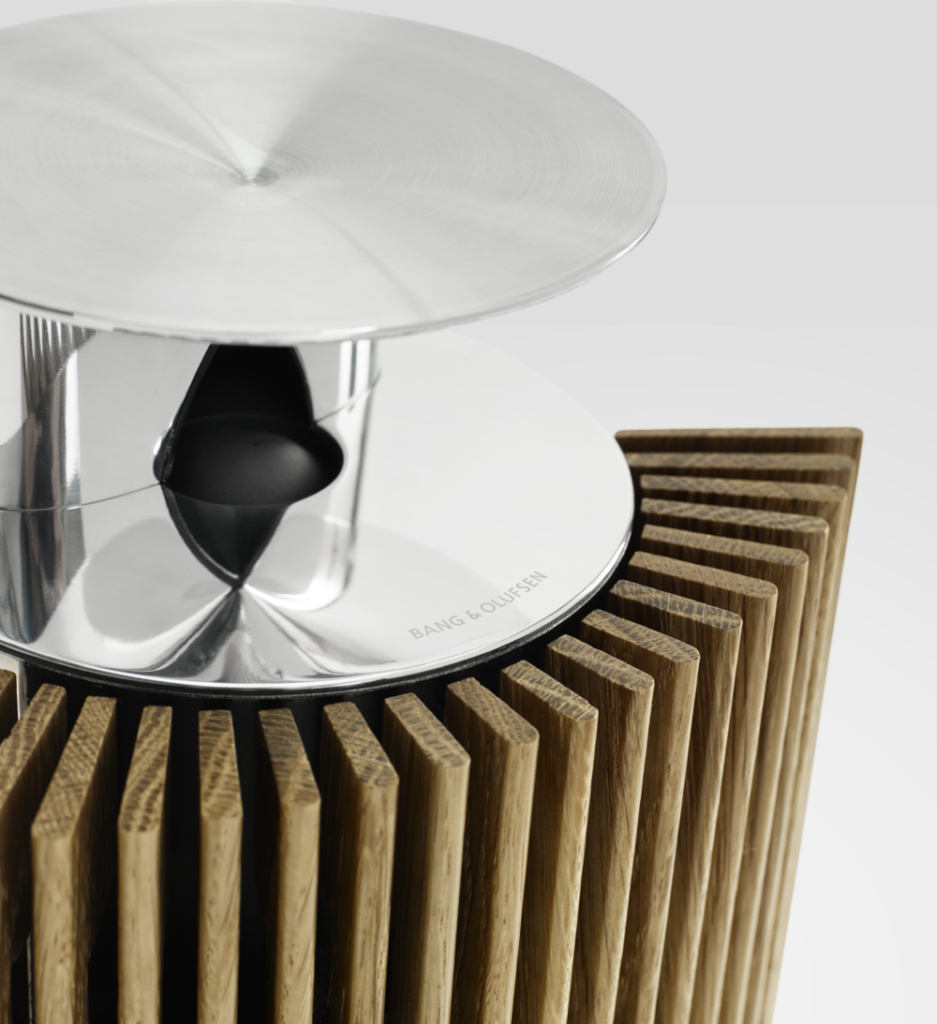 Beolab 18 este o boxă de podea subțire și elegantă, care dispune de o grilă lamelară din lemn de stejar sau nuc, lucrate manual, pentru a acoperi partea frontală și laterală a boxei.