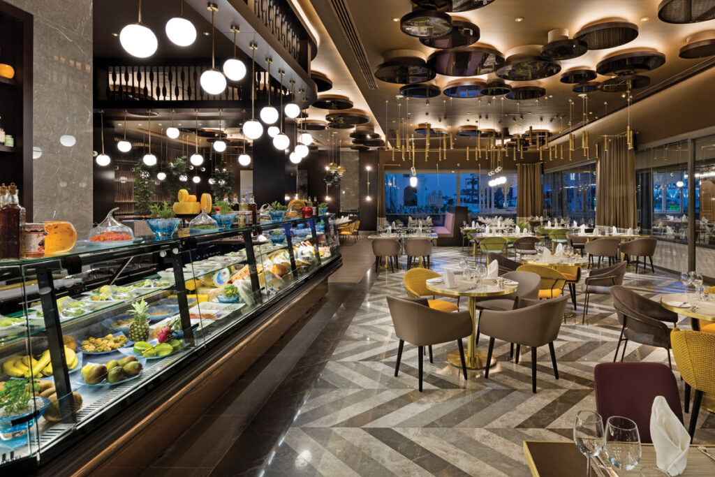 Capitolul gastronomic constituie una dintre atracțiile de căpătâi ale sale. Și aici impresionează nu doar calitatea, ci și numărul punctelor alimentare. Sunt cincisprezece (opt dintre ele deschise și iarna), între acestea un restaurant cu autoservire și un altul à la carte, ambele parte din programul all-inclusive, șase snack baruri și patiserii, la care se adaugă alte șapte restaurante cu specific diferit, ce desenează o adevărată hartă a savorilor lumii – de la gastronomia turcă și italiană la cea indiană. Din arsenalul plăcerilor nu lipsesc tratamentele spa, programele nonstop de divertisment live (în amfiteatru, restaurante etc.), ispitele shoppingului ș.a.m.d. Arhitectonic, Mardan a fost conceput ca un palat; funcțional vorbind, este mai degrabă un templu al simțurilor.