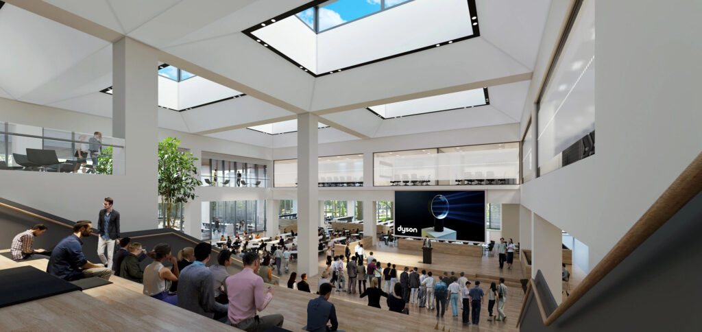 Programat să fie operațional în prima jumătate a anului 2024, campusul va merge pe urmele celorlalte spații inovatoare ale Dyson la nivel global, care pun accentul pe bunăstarea echipei.