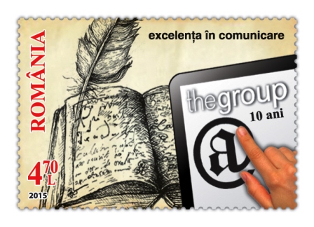 Cristina Popescu, Director General al Romfilatelia, a declarat: „Romfilatelia omagiază, prin emisiunile sale, instituții simbol, personalități ale României și companii care au un rol important în economia românească. Un timbru reprezintă, prin sine, un instrument de comunicare, condensând sensuri și mesaje în imagini-simbol. Timbrul acestei emisiuni evocă, pe de o parte, evoluția comunicării de-a lungul vremii, prezentând metaforic progresul «de la tablițe la tabletă» și celebrează, pe de altă parte, Excelența în Comunicare la aniversarea The Group 10 ani”.
