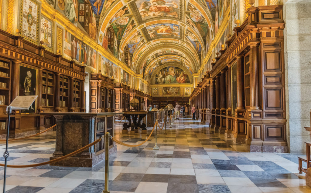 Orașul San Lorenzo El Escorial, aflat la doar 45 de minute distanță de Madrid, adăpostește ansamblul regal cu același nume, intrat în patrimoniul mondial Unesco. Acesta a fost reședința istorică a regilor Spaniei. În secolul al XVI-lea, regele Philip al II-lea a comandat ridicarea unei biblioteci care să nu conțină doar cărți, ci și instrumente pentru studii științifice, cum ar fi globuri pământești, astrolabi sau hărți. Biblioteca El Escorial a fost construită după planurile arhitectului de geniu Juan de Herrera și a fost prima din Europa care nu a mai respectat dogmele medievale în materie de design. Este celebră pentru frescele de pe tavan cu scene ce înfățișează cele șapte arte identificate de antici: gramatica, retorica, dialectica, aritmetica, muzica, geometria și astronomia. Colecția de peste 400.000 de cărți și manuscrise acoperă orice domeniu de interes, de la filosofie și politică până la poezie.