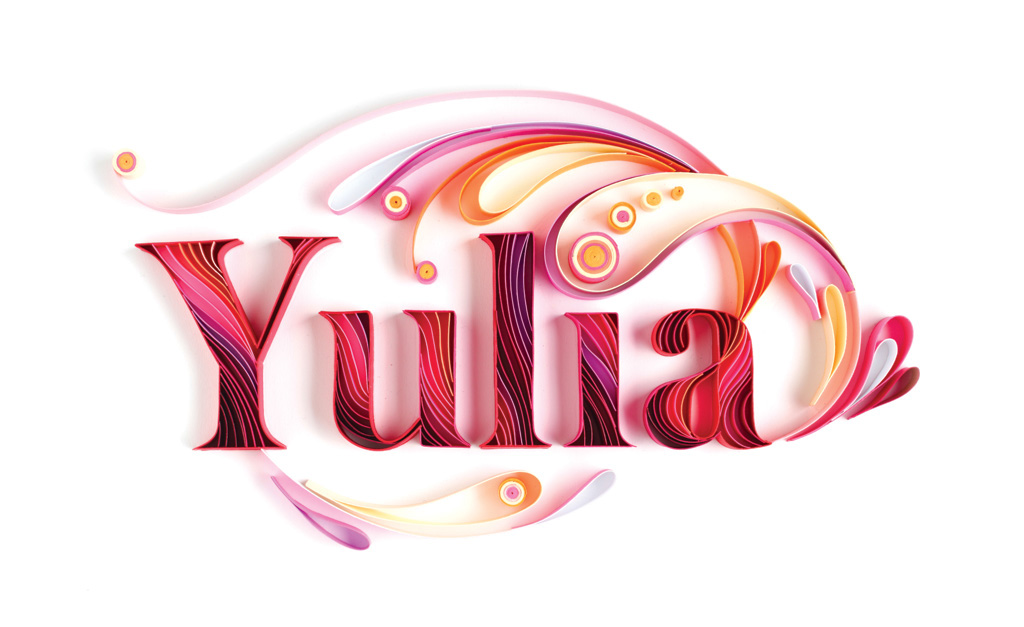 Prima creație din hârtie pe care am făcut-o a fost pur și simplu numele meu în variantă 3D: „Yulia“. Voiam să concep o broșură promoțională pentru a-mi prezenta portofoliul de ilustrații făcute de mână și căutam un mod inedit de a-mi înscrie numele pe copertă. Cumva, în timp ce deliberam care ar fi cea mai bună variantă, mi-am adus aminte de această metodă veche, care presupune lipirea pe margine a mai multor fâșii de hârtie. Habar nu aveam cum se cheamă, dar am folosit-o pentru a face literele care constituiau numele meu. De acolo a început o lungă serie de experimente, care continuă până în ziua de azi, fiindcă stilul meu este într-o continuă evoluție. Dacă ar fi să-i citez pe cei care evaluează și observă arta mea, se pare că eu am făcut Quilling-ul cool și modern, am luat această tehnică veche și uitată și i-am dat o nouă viață. Realitatea e că a devenit mult mai populară după ce am început eu cu experimentele mele.
