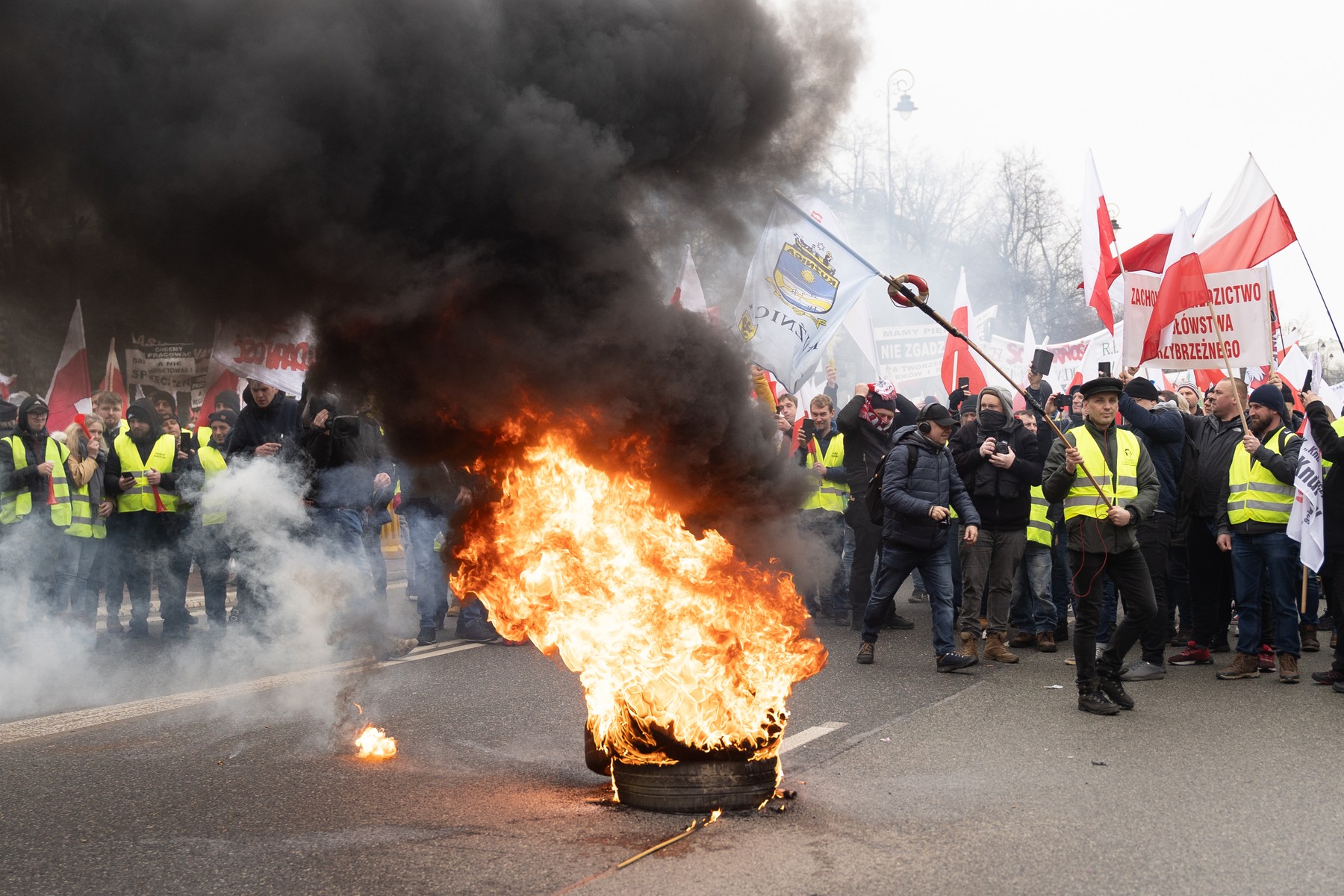 Mii de fermieri polonezi au protestat miercuri în fața biroului prim-ministrului, arzând anvelope și aruncând petarde în timp ce cereau oprirea importurilor ieftine și a reglementărilor de mediu care, spun ei, le afectează mijloacele de trai.