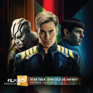 Pe 26 octombrie, de la ora 21:00, tot la FilmBox Premium, este programat Star Trek Beyond” (”Star Trek. Dincolo de infinit”), un science fiction regizat de Justin Lin, în scenariul lui Simon Pegg și Doug Jung, bazat pe serialul de televiziune ”Star Trek”, realizat de Gene Roddenberry. Este al 13-lea film din această franciză, iar Chris Pine și Zachary Quinto sunt actorii care îi interpretează pe Căpitanul James T. Kirk și Comandantul Spock. Au fost păstrați în distribuție și Simon Pegg, Karl Urban, Zoe Saldana, John Cho și Anton Yelchin.