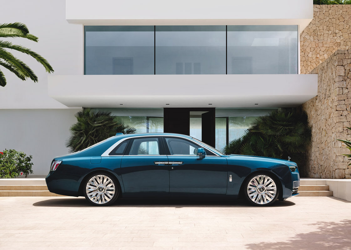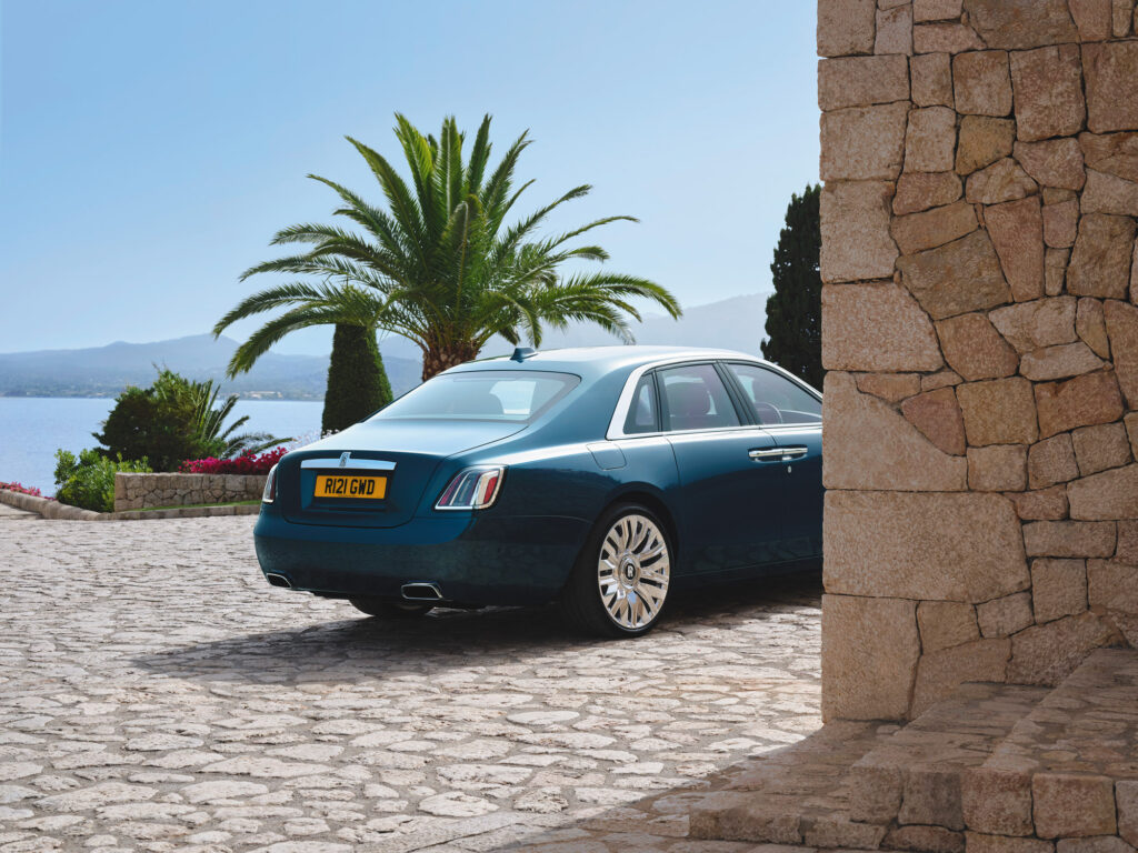 La baza Ghost Series II se află motorul emblematic al mărcii – V12 de 6,75 litri, pe benzină, twin-turbo, aproape silențios și extrem de puternic – alături de cutia de viteze automată cu opt trepte. Aceasta alimentează atât direcția pe toate roțile, cât și tracțiunea integrală. Cuplul maxim este disponibil de la doar 1.600 rpm – adică doar 600 rpm peste ralanti, creând percepția unei singure viteze interminabile și „waftability”-ul unic asociat cu experiența Rolls-Royce.