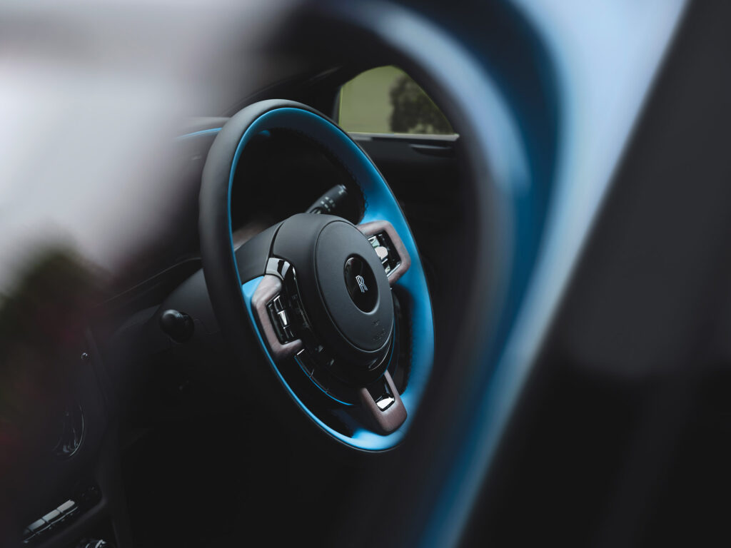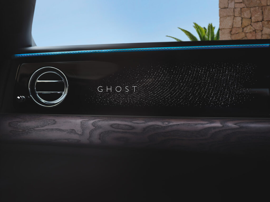 Un nou material de interior denumit Grey Stained Ash a fost creat pentru a completa rafinamentul Ghost Series II. Acest lemn natural, bogat în granulație, este colorat manual și îmbogățit cu particule metalice microscopice pentru a crea un efect unic și contemporan de strălucire – o tehnică ce a durat mai bine de patru ani pentru a fi dezvoltată.