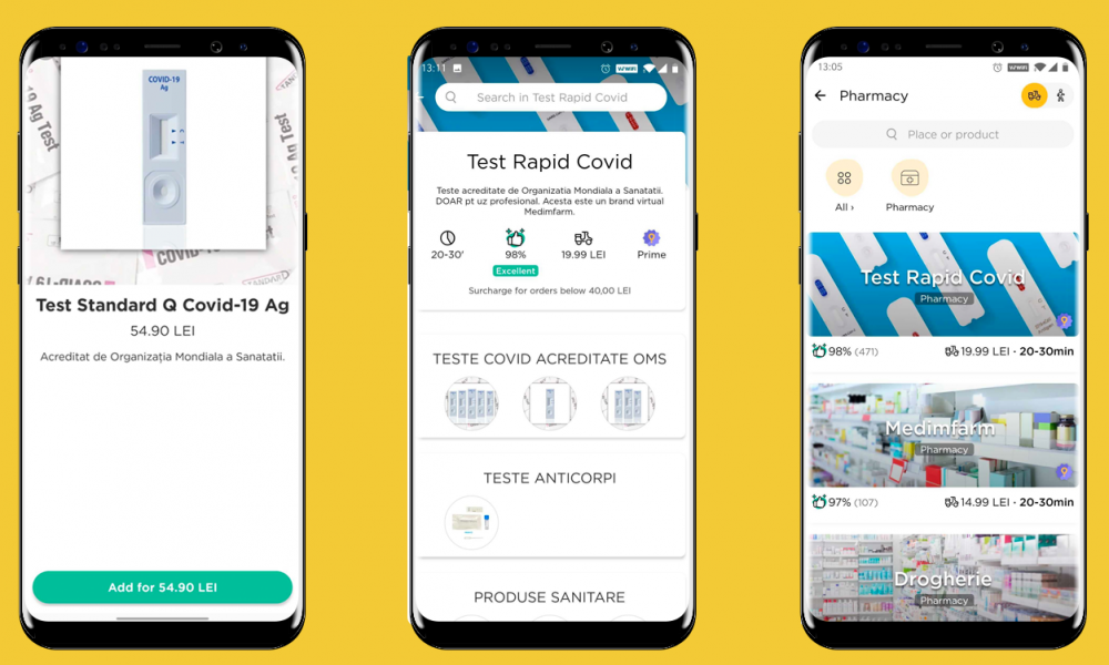 „Din dorința de a veni în întâmpinarea nevoilor utilizatorilor Glovo, ne-am gândit la partenerierea cu Medimfarm pentru a le oferi celor interesați posibilitatea de a-și realiza teste rapide Covid-19, livrate într-un timp scurt și cu toate măsurile de siguranță respectate”, a declarat Victor Răcariu, General Manager Glovo CEE.