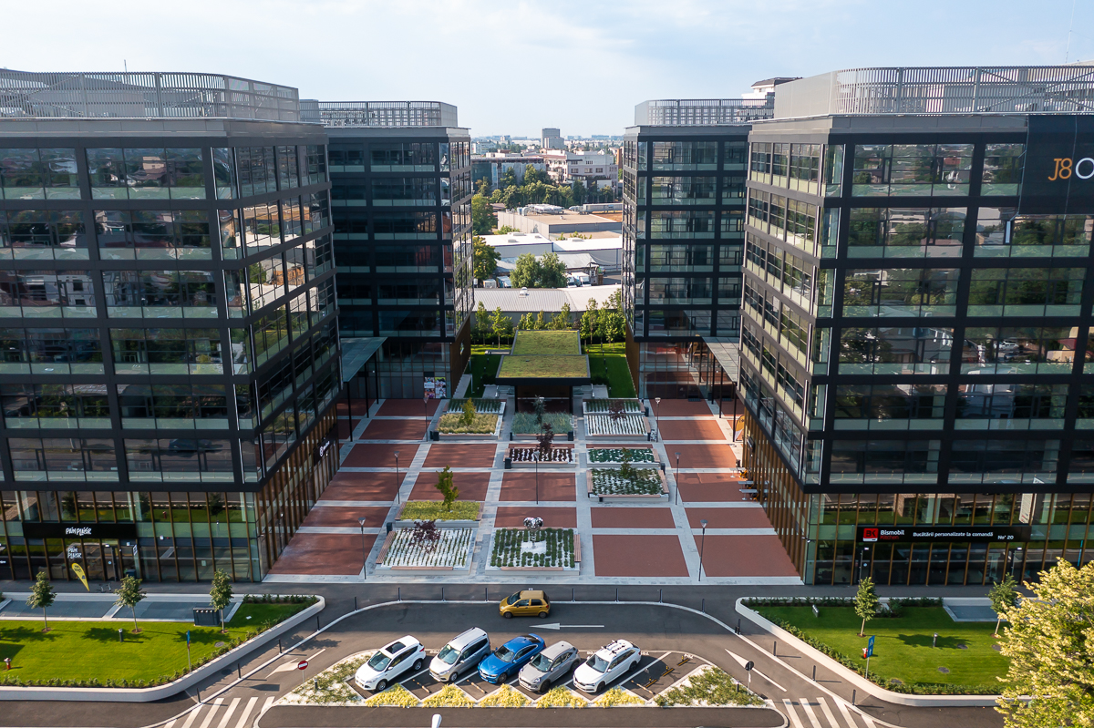 Situată în nord-vestul Bucureștiului, J8 Office Park este un parc de birouri de 46.000 mp care în prezent găzduiește sediul Ubisoft, cu o suprafață totală de 23.000 mp, unde lucrează peste 1.800 de angajați. Printre chiriași se numără și companii precum Photon Energy, Topanel și Autonom, care au au securizat recent o suprafață totală de 1.500 mp de birouri. Complexul de birouri găzduiește și un club de sport World Class, o clinică Medicover, restaurante, magazine și alte servicii.