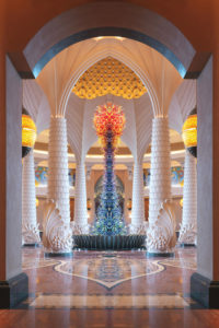 Chihuly este unul dintre cei mai reputați sculptori în sticlă, material foarte dificil de modelat, căruia totuși artistul reușește să-i dea forme neașteptate, uneori aparent imposibile. În 1976, Chihuly a fost implicat într-un accident auto. Artistul a fost proiectat prin parbriz, ale cărui cioburi i-au produs multiple tăieturi pe față și l-au lăsat fără ochiul stâng. Tavanul holului este decorat de opt picturi murale realizate de artistul spaniol Albino Gonzalez, specializat în reinterpretarea mitologiei.