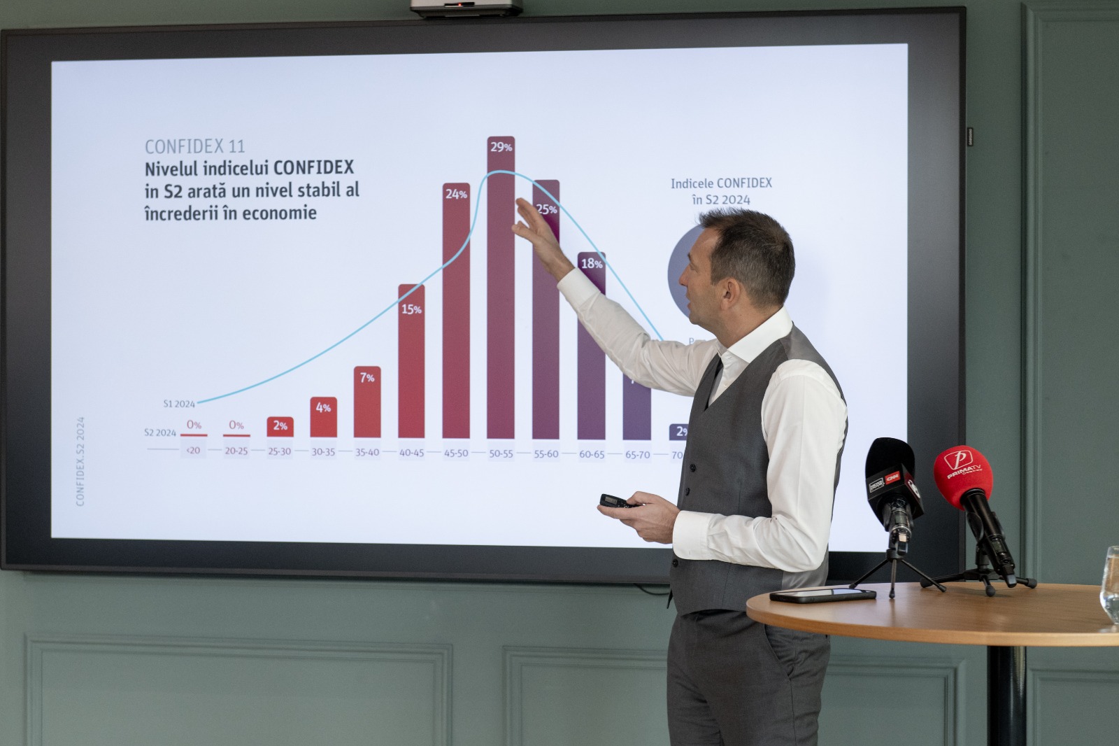 „La fiecare ediție a studiului CONFIDEX observăm o sezonalitate: încrederea mediului de business în economie este la un nivel mai ridicat primăvara, în timp ce, la final de an, managerii manifestă pesimism. La această a 11-a ediție a studiului însă, valoarea totală a indicelui a rămas aproape neschimbată față de valoarea măsurată în S1 2024, ceea ce ne poate indica reziliența antreprenorilor și managerilor români – rămânem relativ încrezători și navigăm, găsim soluții chiar și în perioade marcate de impredictibilitate. Deși, conform datelor colectate, viitorul îngrijorează respondenții, observăm că managerii români nu abordează contextual o atitudine fatalistă, ci sunt mai degrabă axați pe acțiune – caută variante de diversificare a produselor, de digitalizare și capătă tot mai multă încredere în investitori. Este o atitudine corectă, ce ne poate ajuta să devenim mai rezilienți si să susținem în mod activ dezvoltarea economiei românești și transformarea țării noastre într-un pilon de creștere și stabilitate în regiune”, a declarat Andrei Cionca, co-fondator al fondurilor de private equity ROCA și Agista, și inițiatorul studiului CONFIDEX.