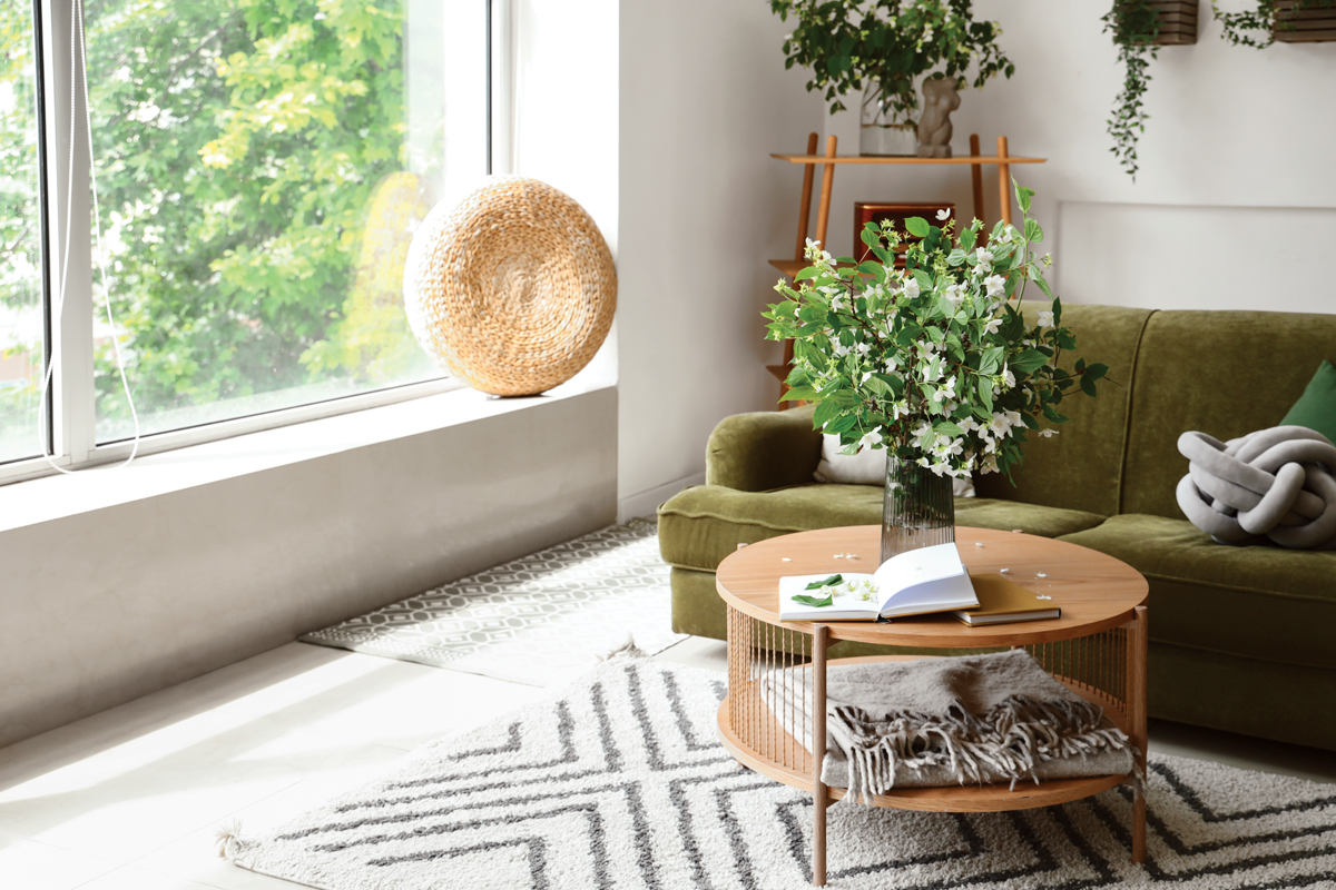 Cât despre finisaje, unele materiale naturale, cum ar fi tencuielile pentru pereți din lut (o alternativă naturală la obișnuitul gips), nu numai că nu conțin COV, ci sunt și mai performante: de exemplu, tencuielile din argilă au capacitatea de a regla pasiv umiditatea mediului interior, ajutând la menținerea acestuia la un nivel optim între 30%-70%, diminuând astfel riscul formării mucegaiului sau fungilor și absorbind mirosurile.