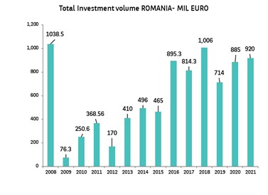 Volumul total al investițiilor imobiliare de pe piața românească a fost de 919,45 milioane de euro în 2021, în creștere cu 4% față de anul precedent, potrivit unui studiu realizat de compania Fortim T.A., membră a Alianței BNP Paribas Real Estate.