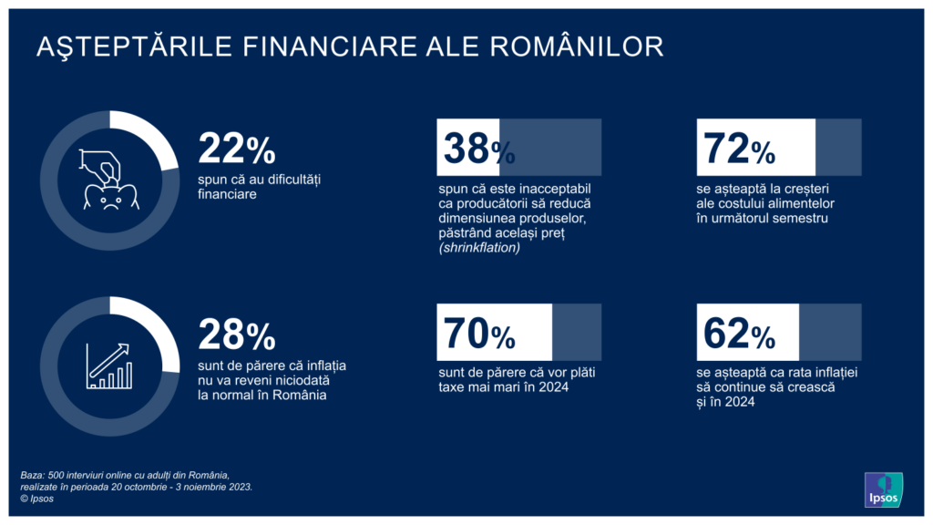 Cel mai recent sondaj Ipsos Global Inflation Monitor arată că, în medie, o treime dintre oamenii din 33 de țări vor avea mai mulți bani de cheltuit în următorul an, pe măsură ce prețurile vor scădea ușor în multe locuri. Aproape jumătate din populația globală a remarcat fenomenul numit „shrinkflation”: faptul că produsele devin mai mici, dar prețurile rămân neschimbate.