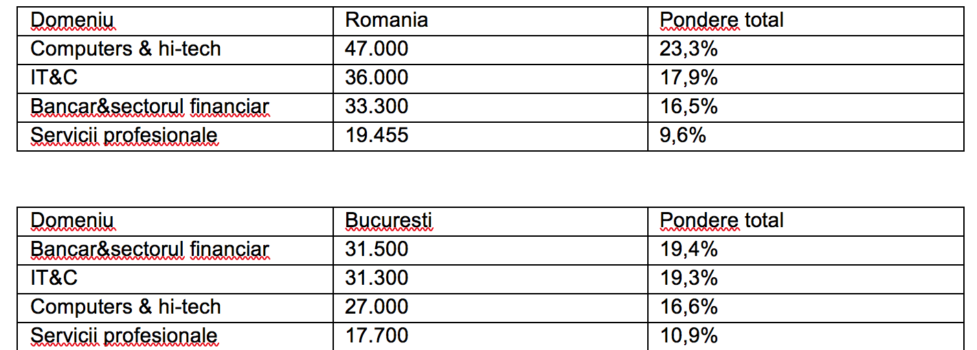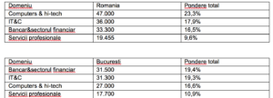 Cumulat la nivel de țară, inclusiv Bucureștiul, companiile din domeniul computers & high-tech reprezintă 23,3% din piață, iar industria de IT&C au închiriat 17,9% din total spațiile tranzacționate în România în primele nouă luni. Sectorul bancar și financiar a generat 16,5% din tranzacții la nivel național.