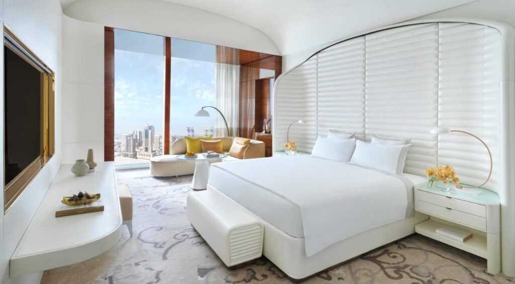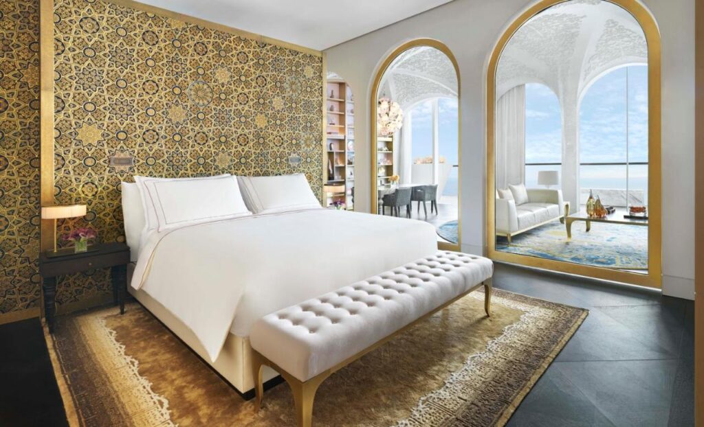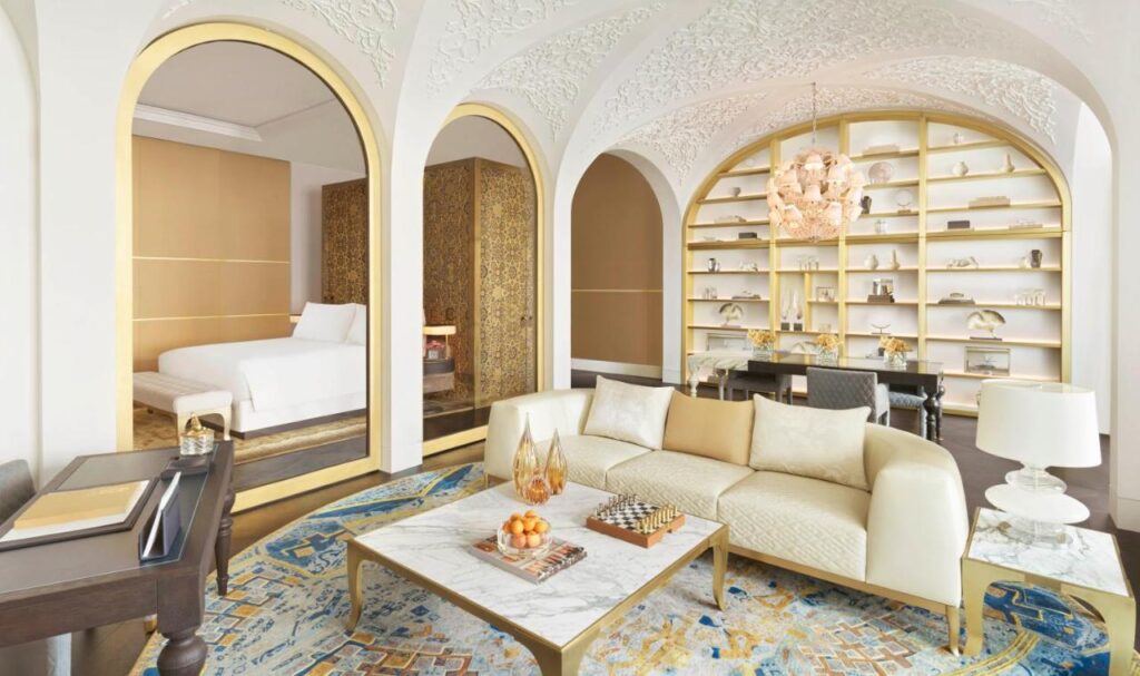 Dacă albul și albastrul domină amenajarea majorității camerelor, cele mai scumpe apartamente din aripa Fairmont, Peregrine și Lanner, sunt denumite după rase de șoimi – șoimăritul este un sport popular în țările arabe.