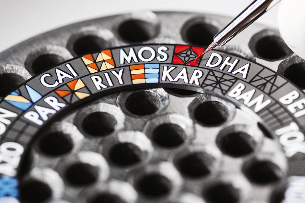 Colorat în 38 de nuanțe diferite, aplicate conform unei tehnici străvechi de pictură miniaturală, cadranul ceasului este o invitație multicoloră la o călătorie în jurul lumii: grație noii funcții „Worldtime“, fără a atinge vreun buton sau a face vreun gest, poți cunoaște în orice moment cât este ceasul după 24 de fusuri orare diferite, cu ajutorul a trei discuri mobile. „Escale Worldtime“ este doar una dintre recentele creații ale „fabricii de ore și de minute“ pe care Louis Vuitton a fondat-o – nu la Paris, unde bate în continuare inima „Maison LV“ – ci în fieful marilor orologeri, la Geneva, sub titulatura extrem de plastică de „La Fabrique du Temps“.