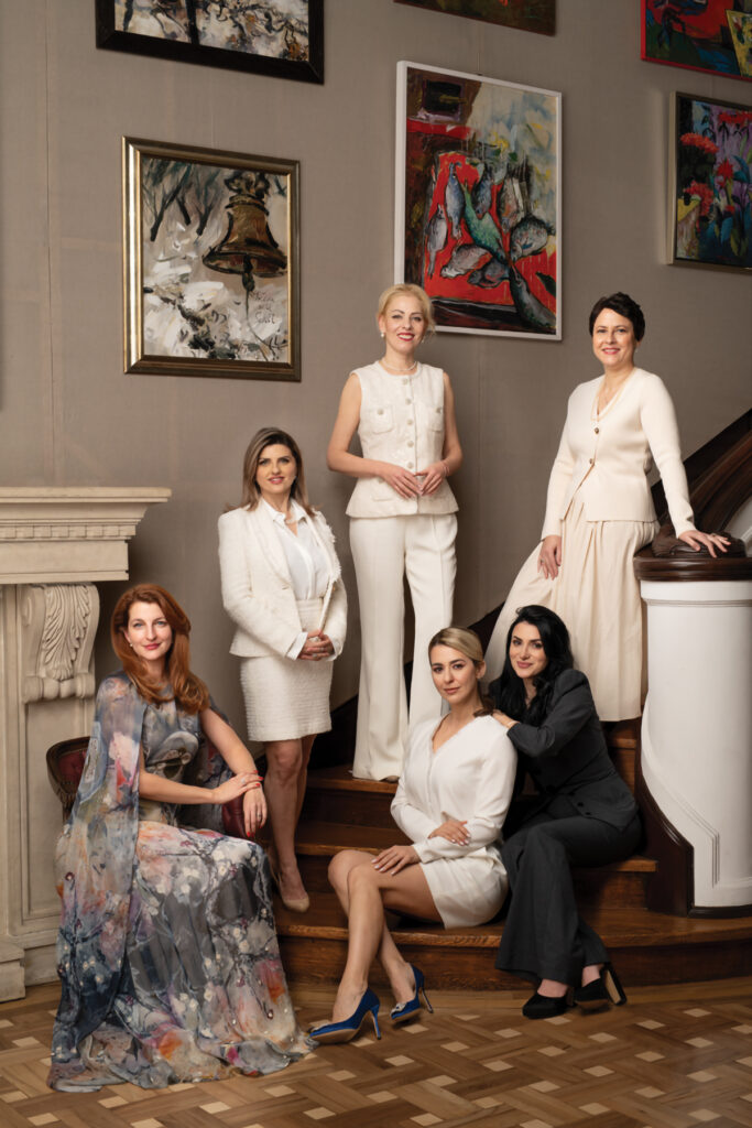 Delia Baciu poartă un taior semnat Cristallini, Marina Bundac poarta o salopeta Self-Portrait (magazinul Maison Couture), Madalina Diaconu poarta un set semnat Nadare, Andra Marinescu, Sandra Ecobescu și Maria Tureanu poarta ținute din garderoba personală.