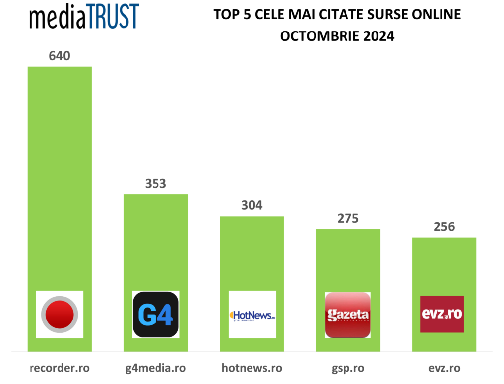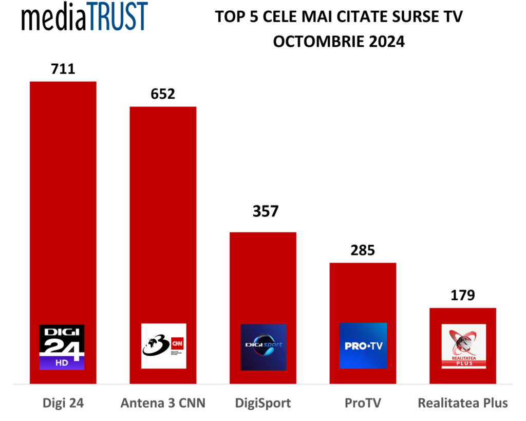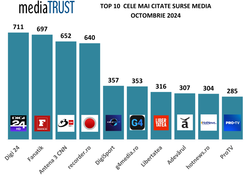 Studiul celor mai citate surse de media din România oferă informaţii cu privire la numărul citărilor unor instituții media (print, online, radio, TV), fără a include şi agenţiile de presă. Cercetarea a fost realizată în perioada 01 octombrie – 31 octombrie 2024.